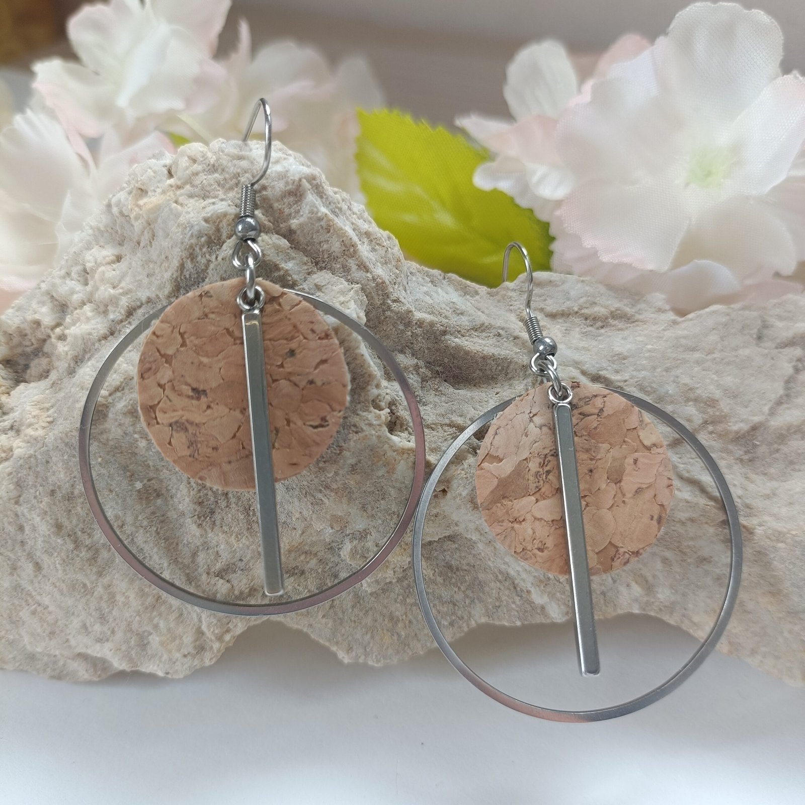 Ajoutez une touche de raffinement à votre look avec nos boucles d’oreilles en liège et acier