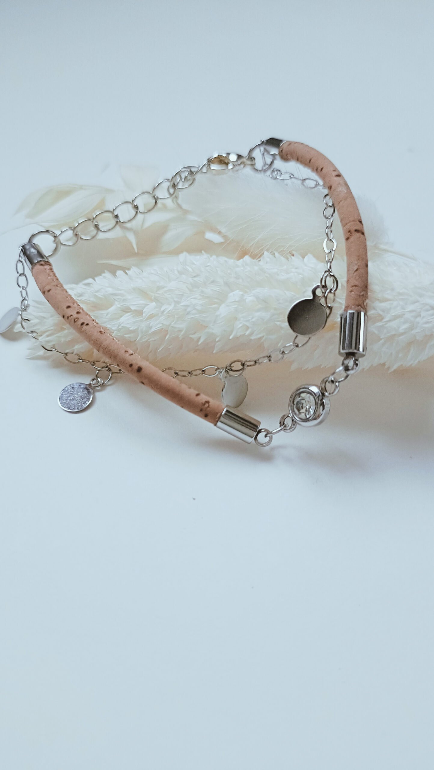Composition : cuir de liège du Portugal et perle et chaînette (modèle 2)