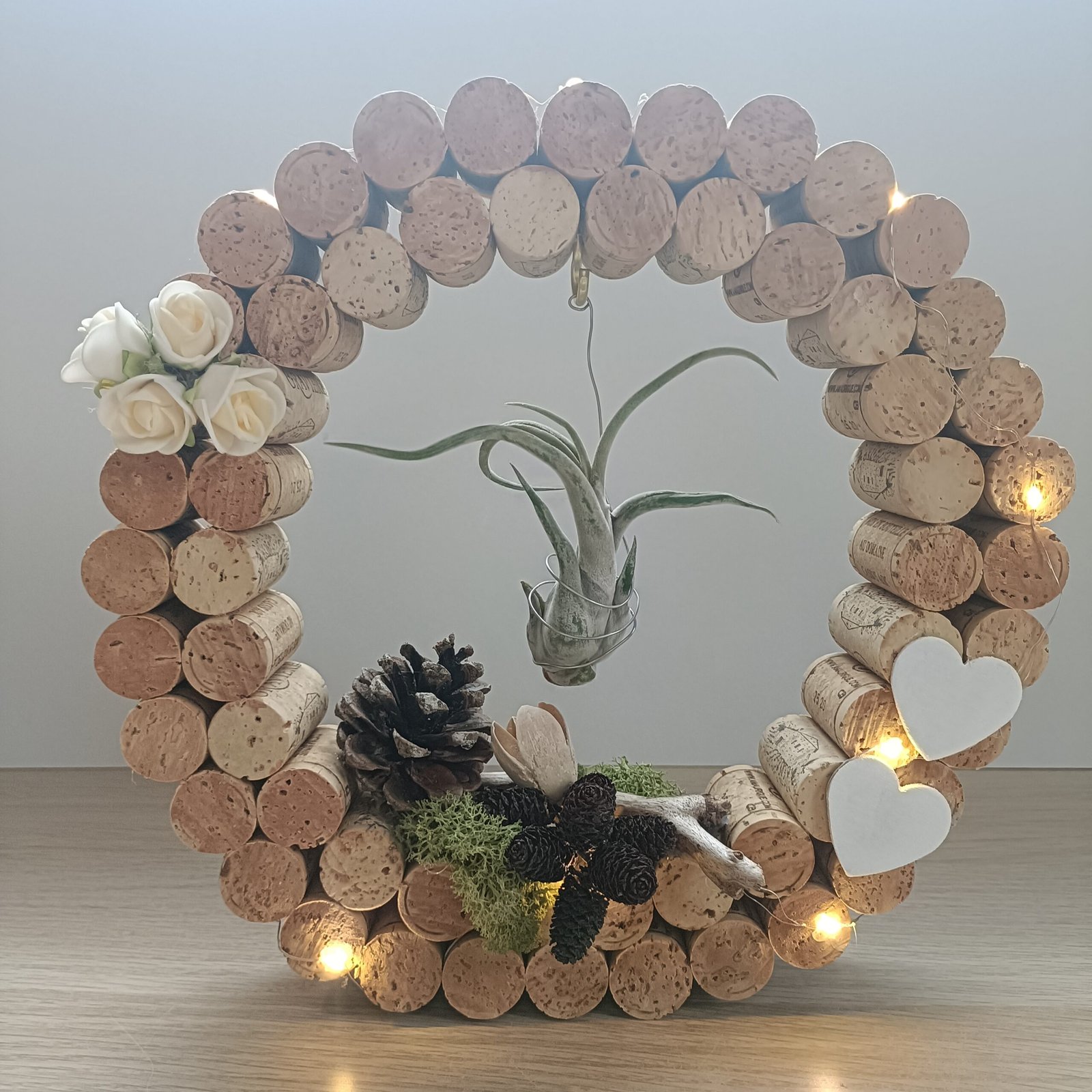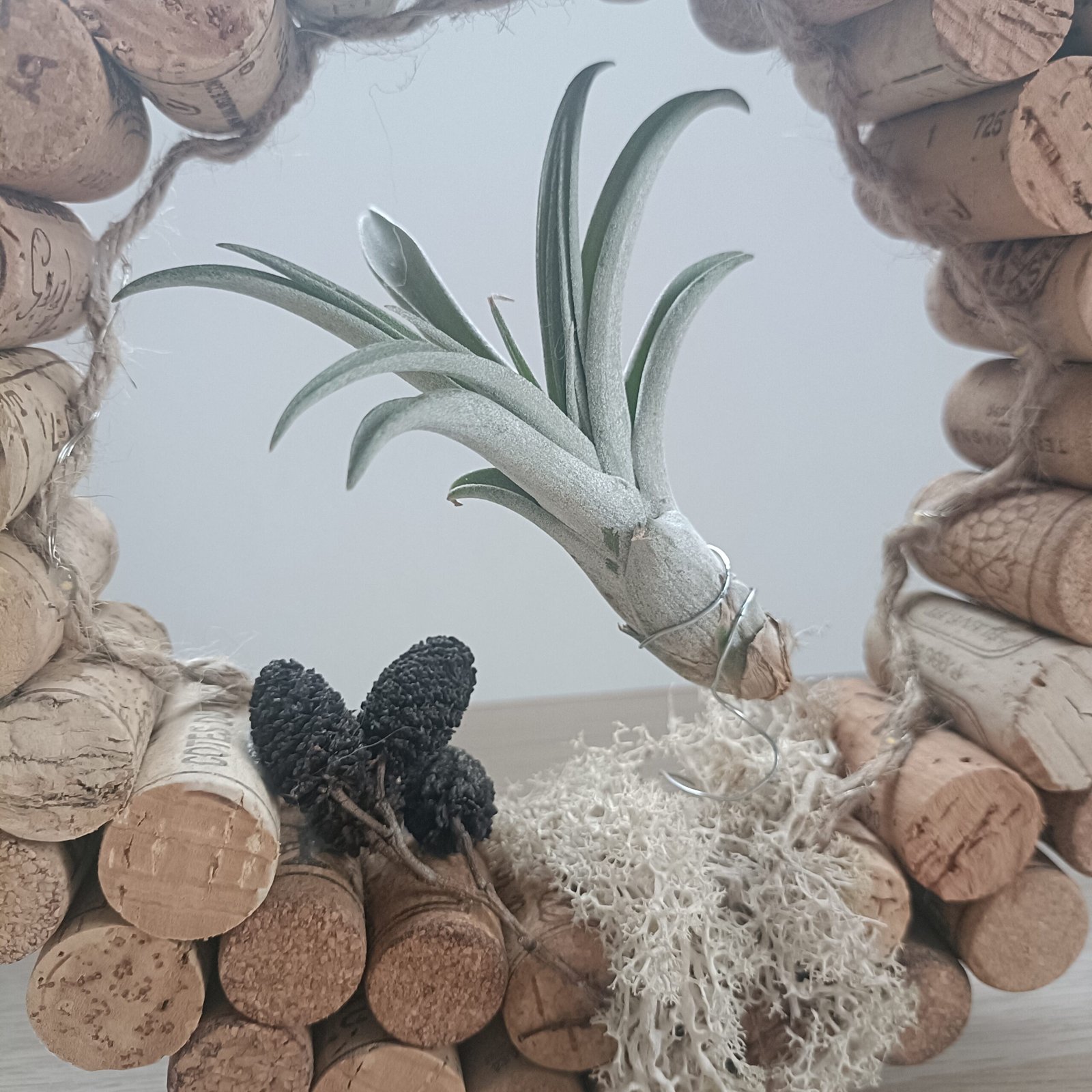 Découvrez nos magnifiques décorations rondes artisanales avec plantes aériennes, en bouchons de liège, entièrement faites à la main. Ces créations uniques marient le charme naturel des matériaux recyclés et l’élégance des plantes aériennes Tillandsia. Chaque pièce est conçue avec soin, offrant un design captivant qui saura sublimer votre intérieur tout en respectant l’environnement.